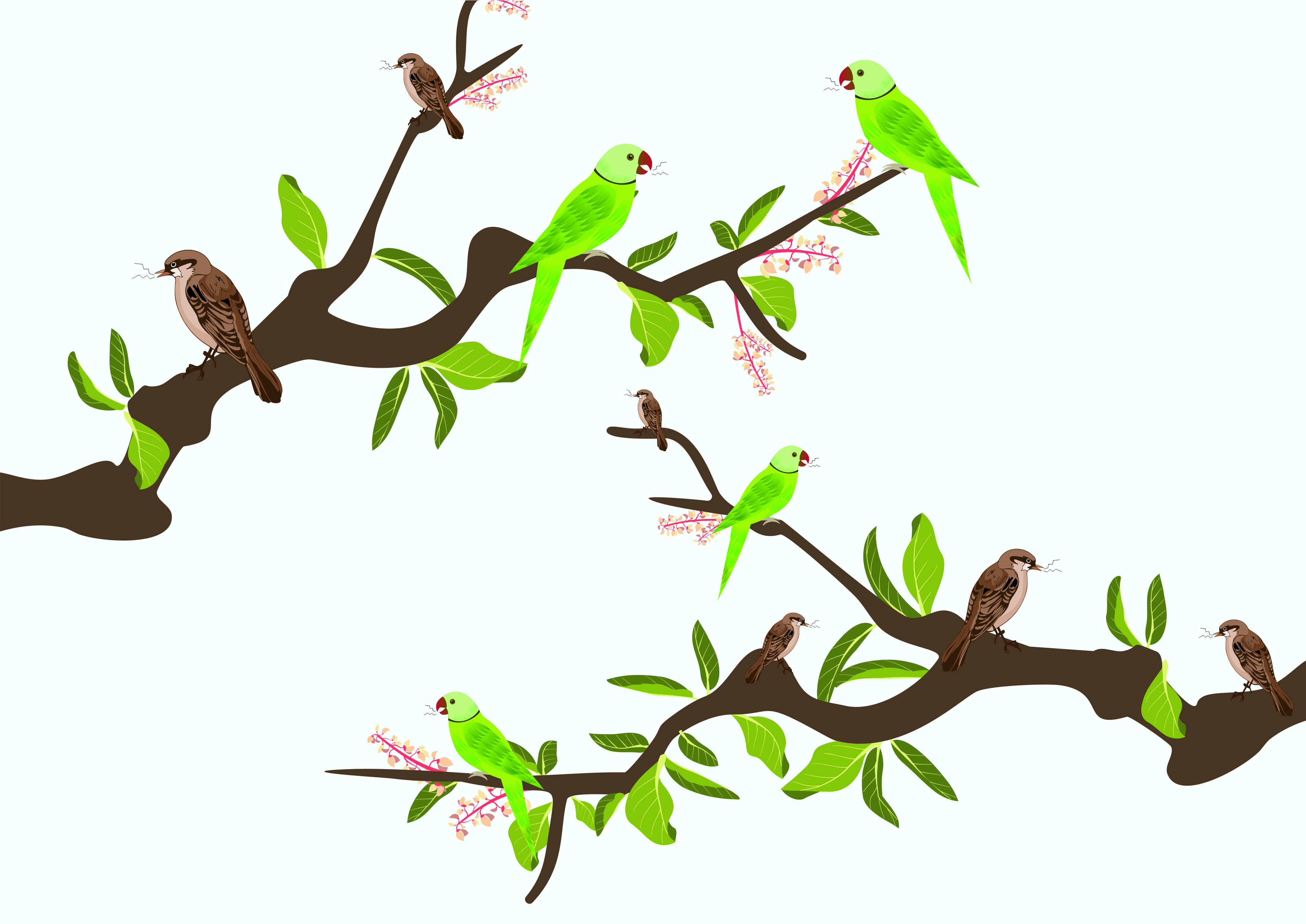 बागेत पक्षी किलबिल करत आहेत.