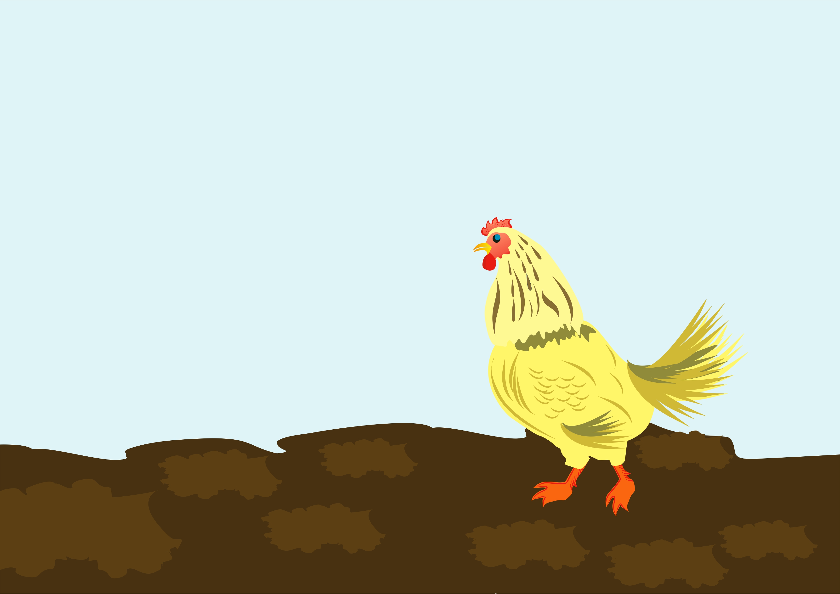 चित्रविचित्र रंगाची, कोंबड्याच्या मानाने तुरा व कल्ले लहान असलेली, शेपटीची पिसे आखूड असलेली एका पक्ष्यातील मादी