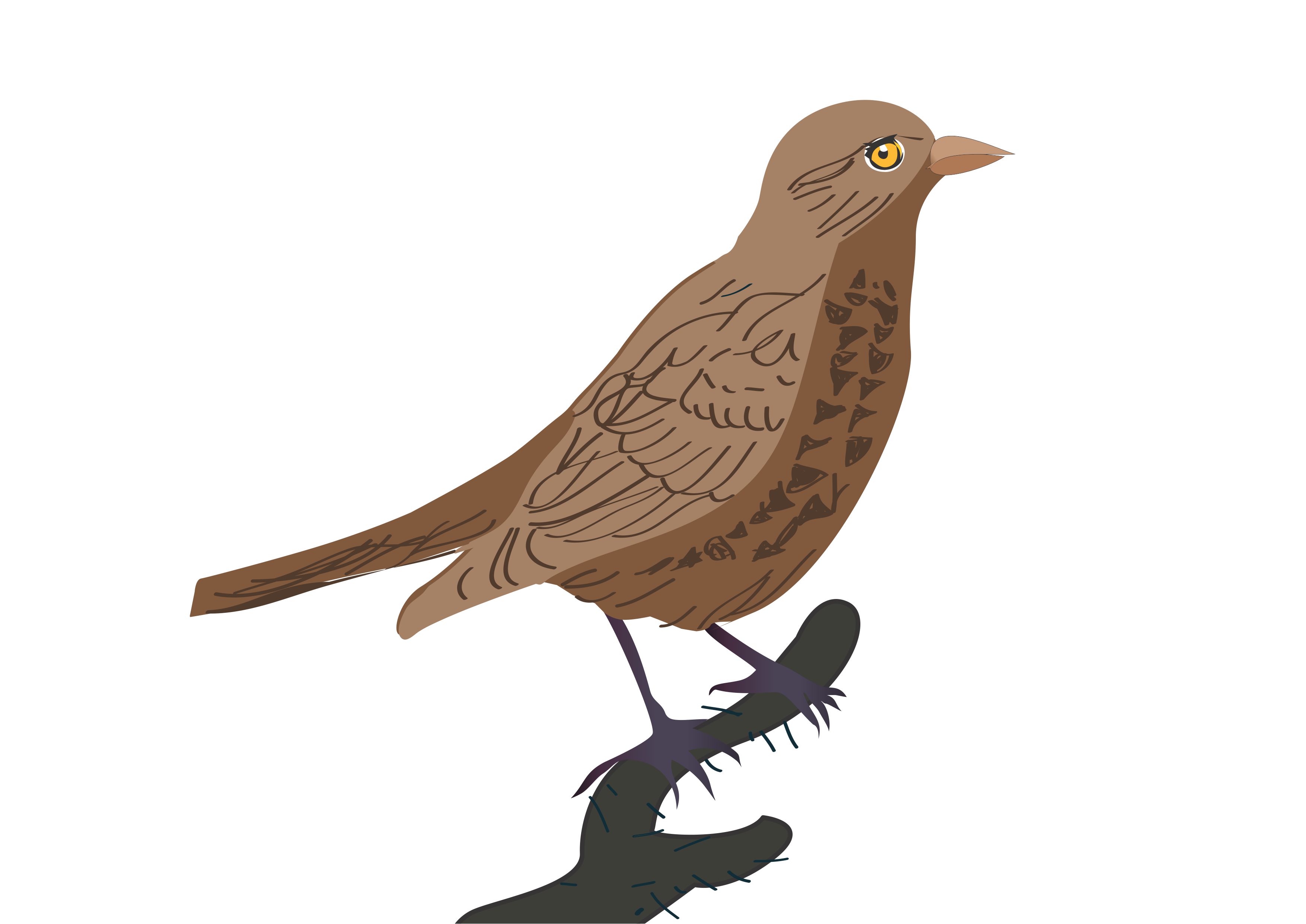 डोळ्यावर तांबूस पांढरी रेघ असलेला, मातट तपकिरी पाठीवर काळ्या व तपकिरी रेघोट्या, पंखावर दोन आडवे पट्टे असणारा, लहान आकाराचा एक पक्षी