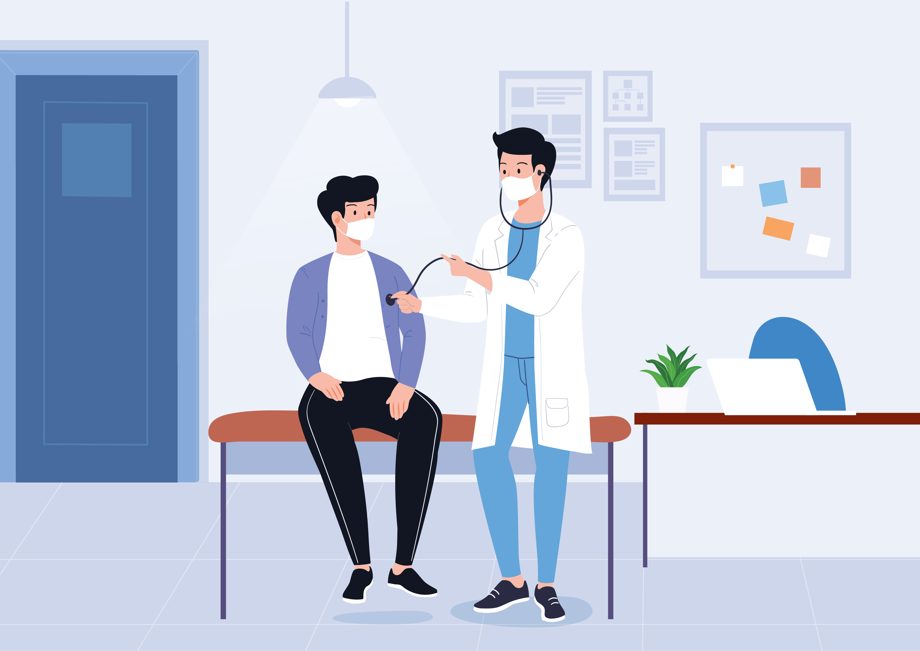 चिकित्सक झोपलेल्या रुग्णाचे पोट तपासत आहे.
