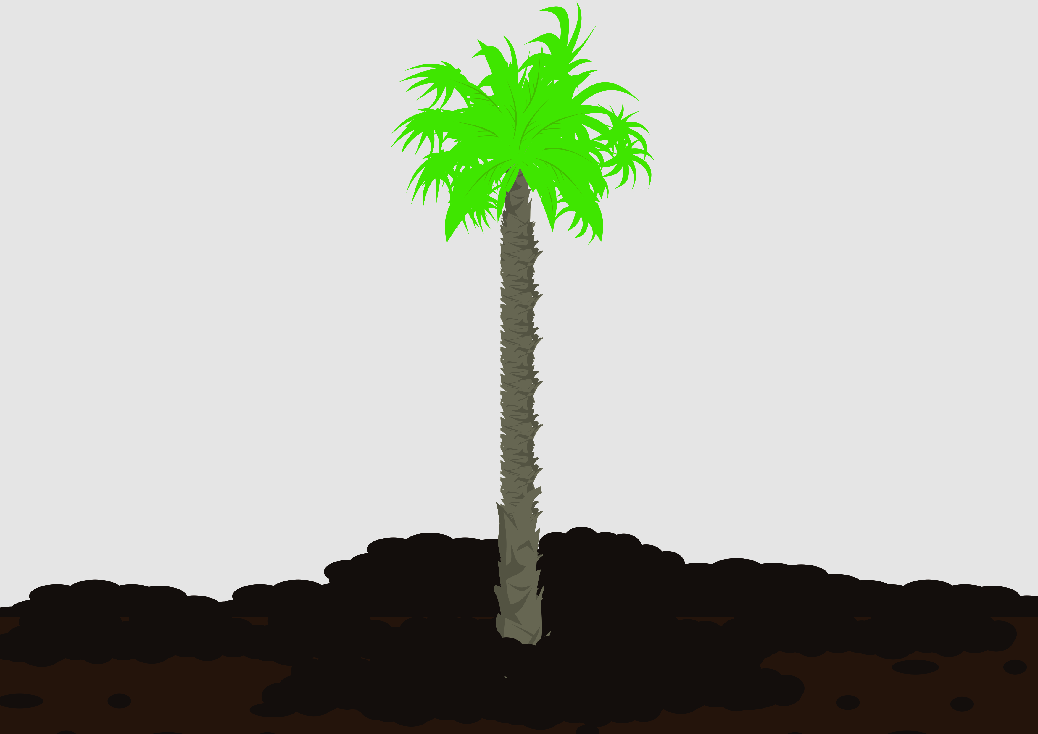 वरच्या टोकाशी पंख्याच्या आकाराची पाने असलेला नारळी पोफळीच्या जातीचा एक उंच झाड