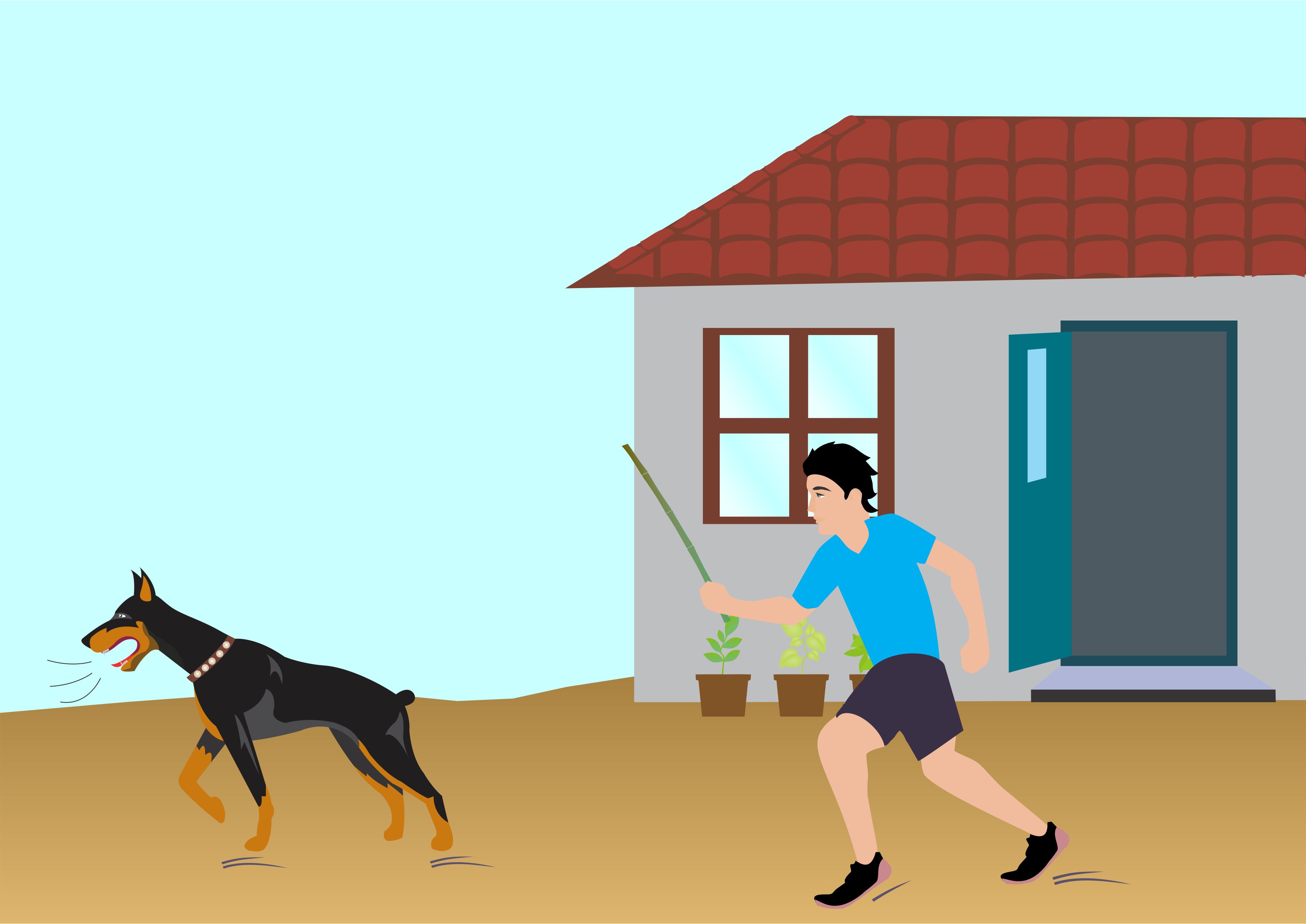 राजीवने दारात बसलेल्या कुत्र्याला पळवून लावले.