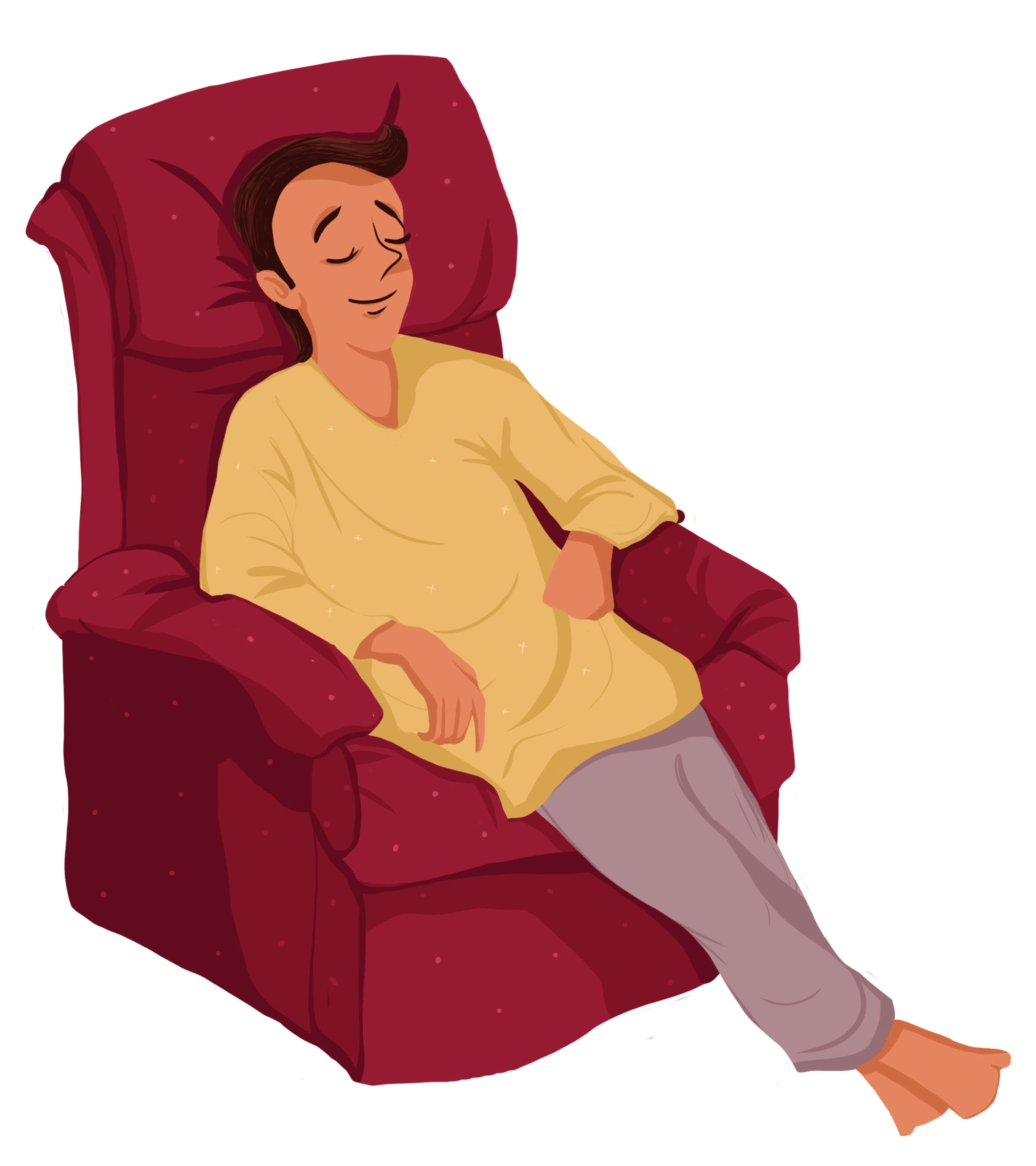 तो बाजारातून आल्यानंतर आरामखूर्चीत पसरला.