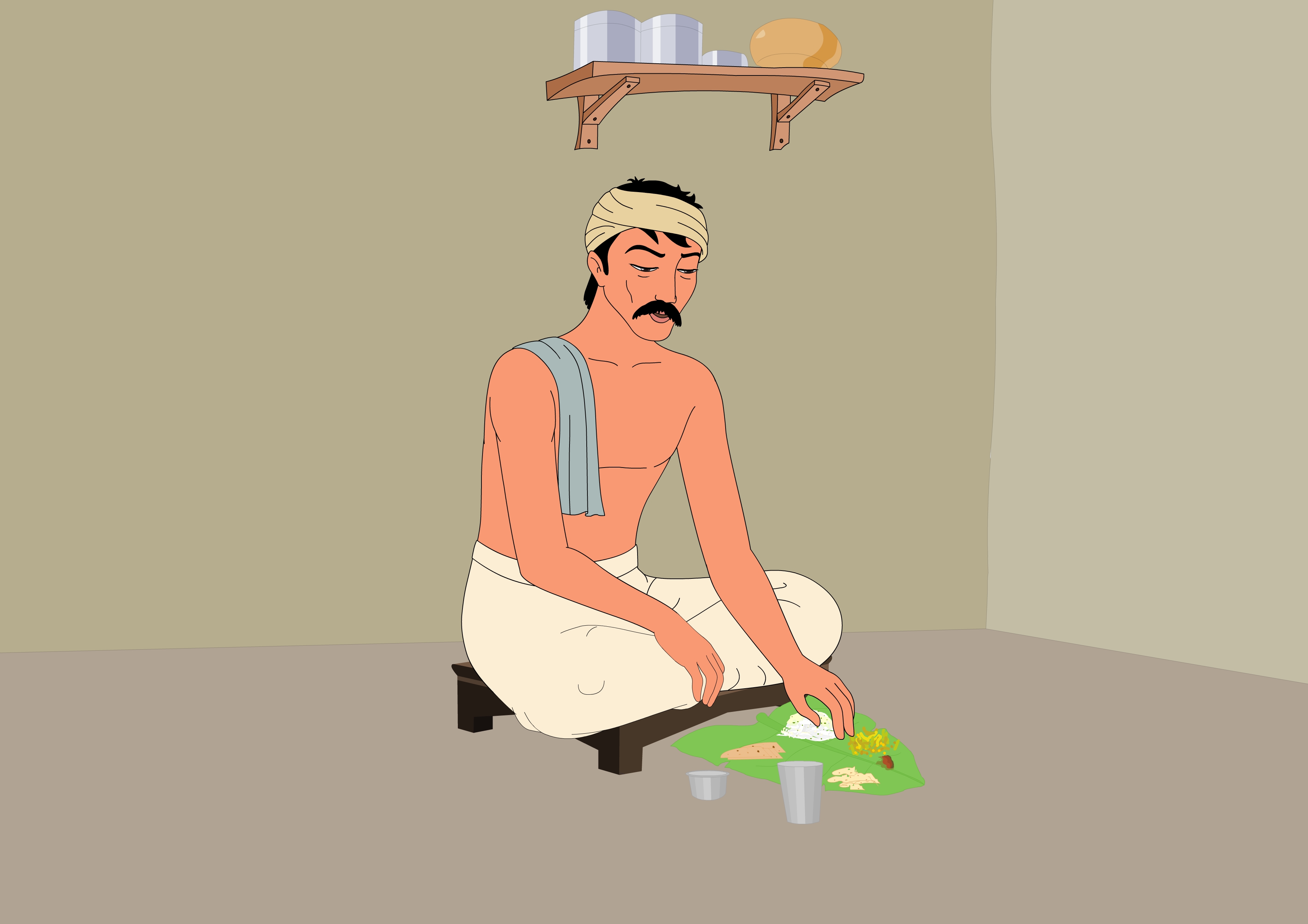 भारतीय पद्धतीप्रमाणे पाटावर बसून जेवण्याची रीत आहे.