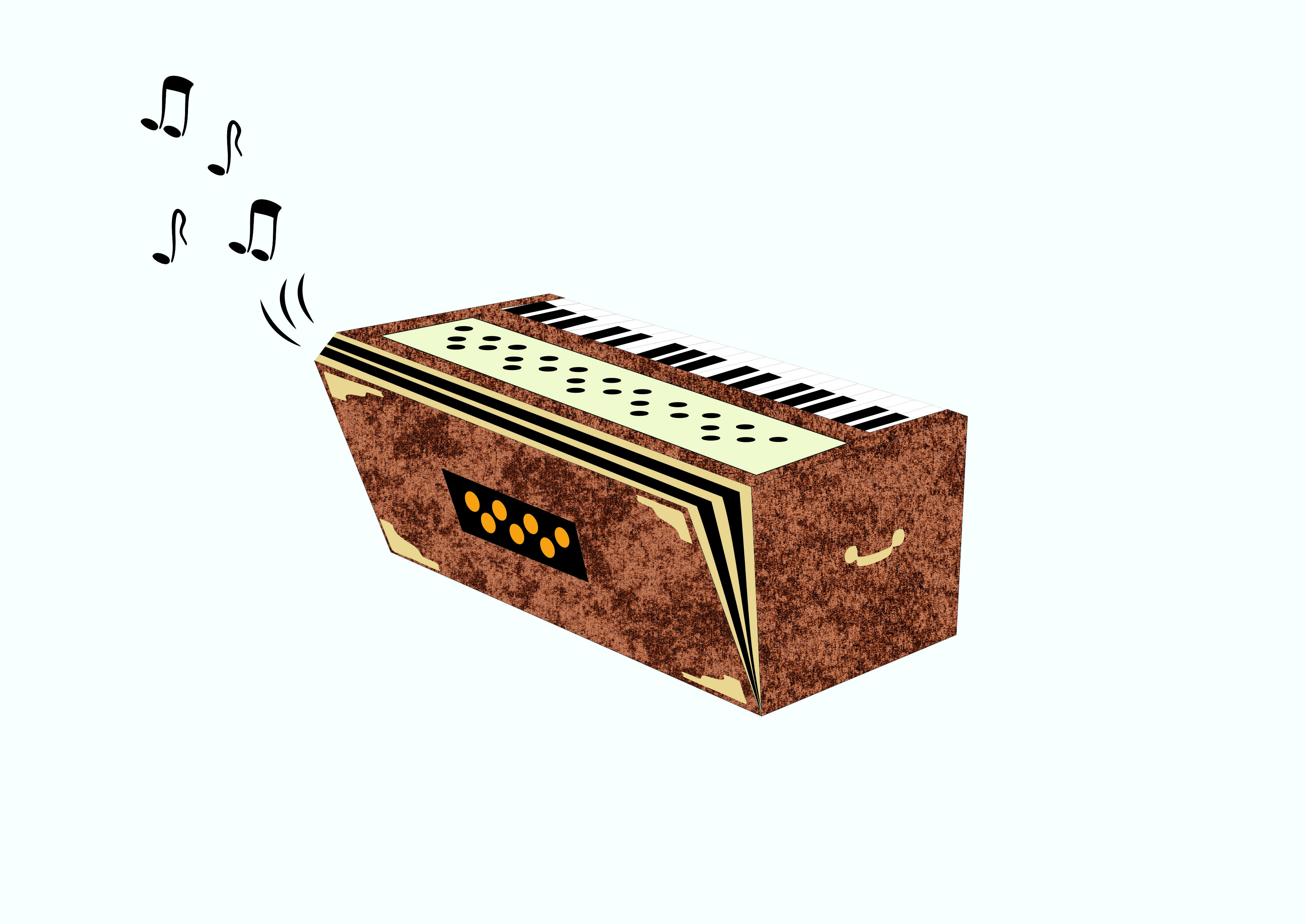 काळ्या पांढर्या अशा बेचाळीस पट्ट्या असलेले, भाता हलवून आणि कळा दाबून वाजवले जाणारे एक वाद्य