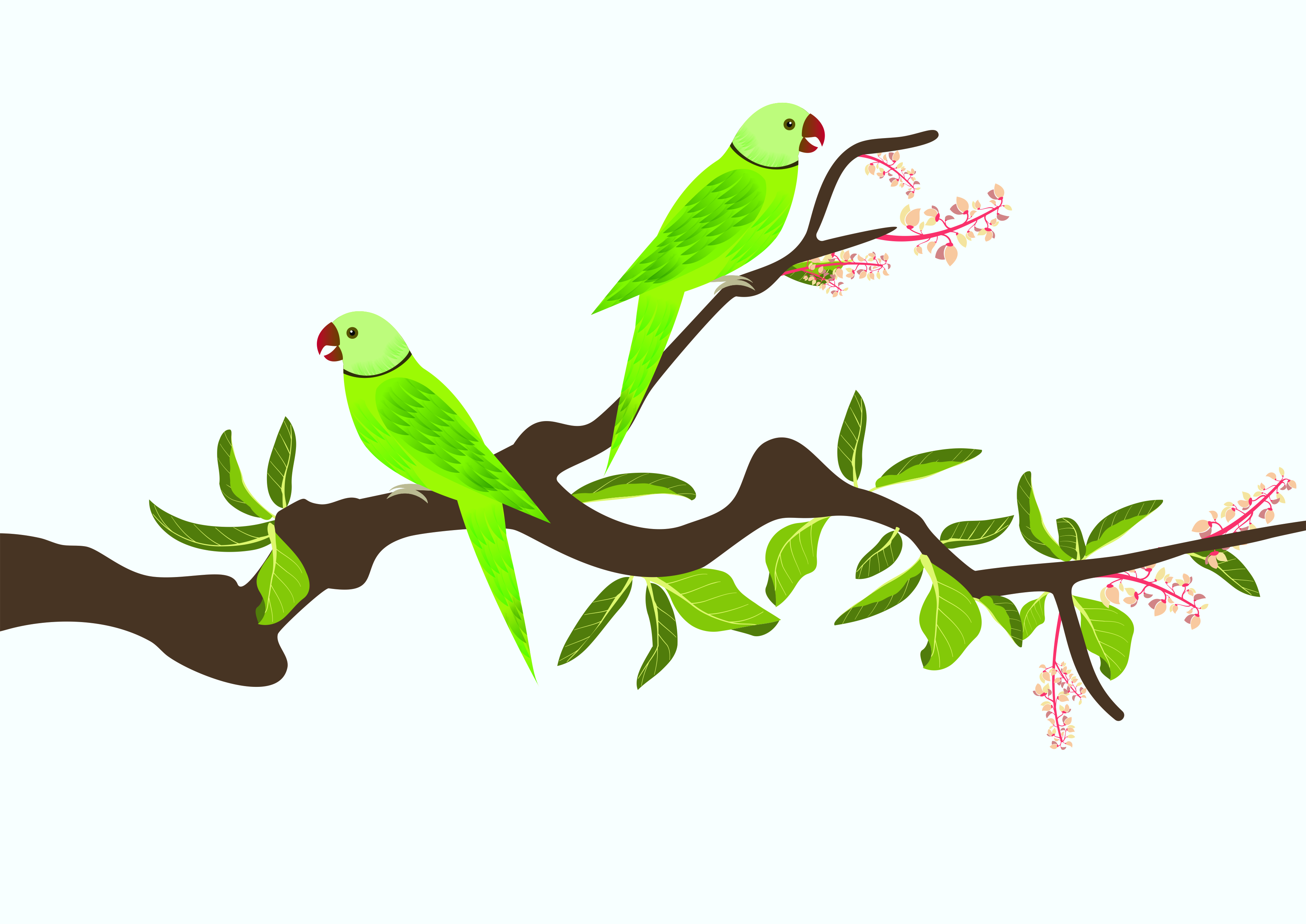 हिरव्या रंगाचा, लाल बाकदार चोच, लांब टोकदार शेपूट असलेला एक पक्षी