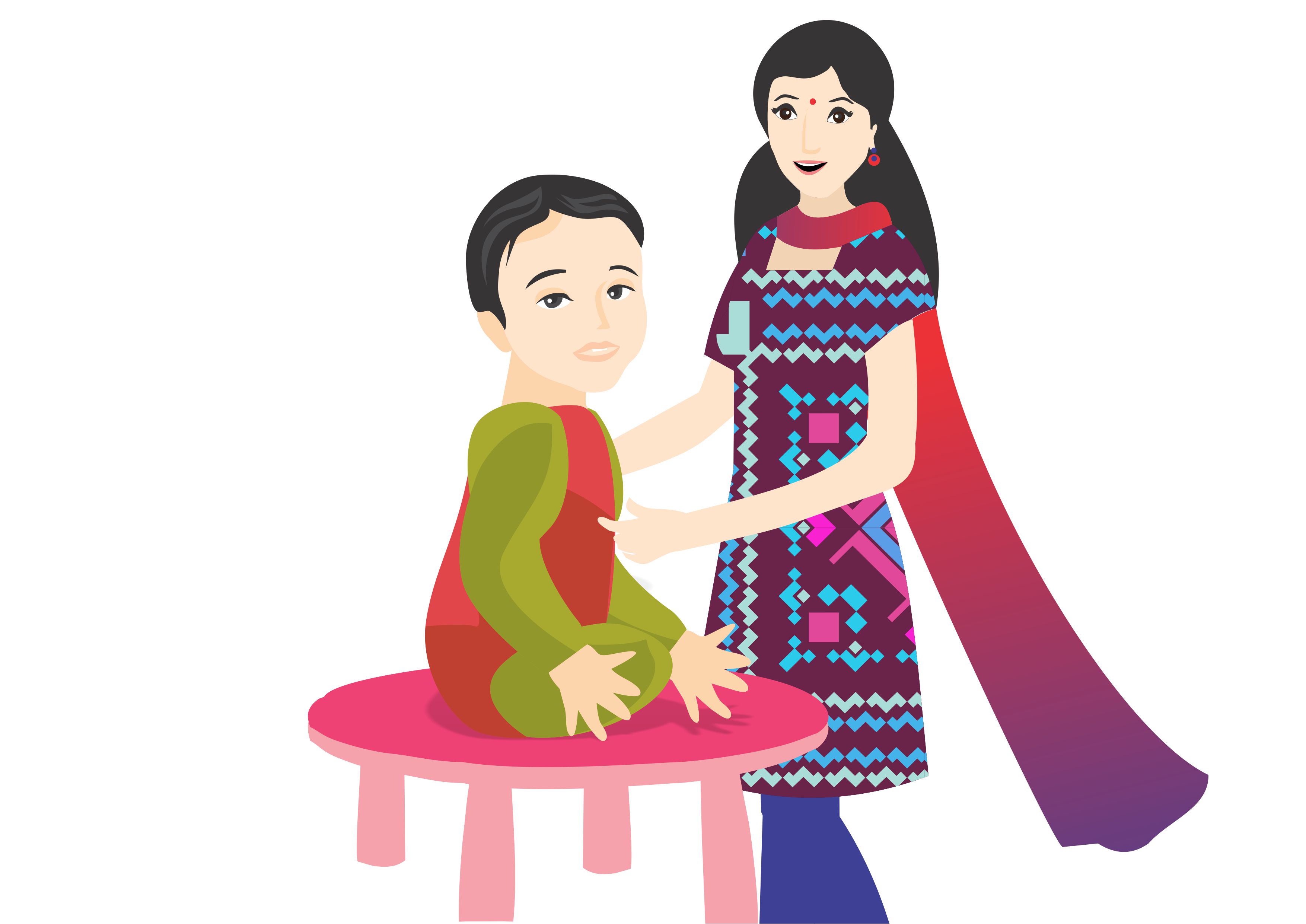 आजोबांनी रडणार्या मुलाला घोड्यावर बसविले.