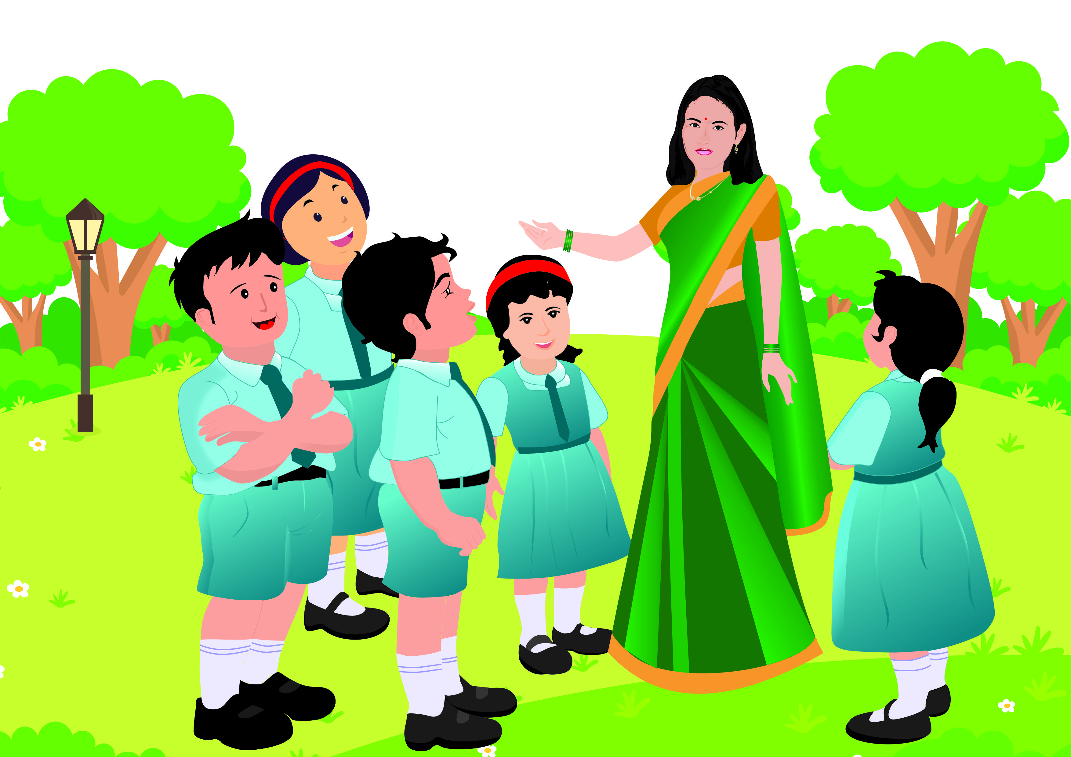 मुले गोष्टी रचतात.