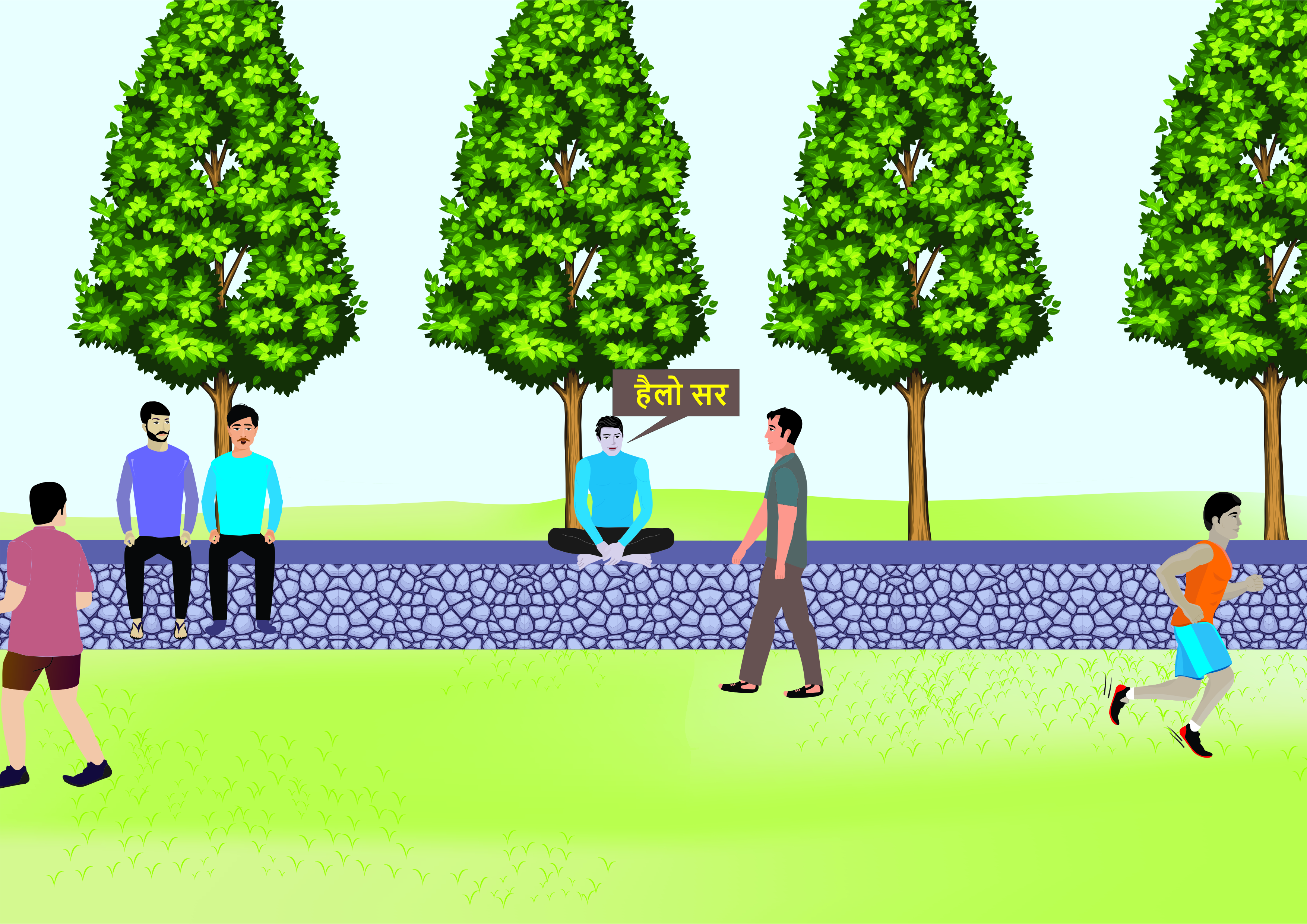 बागेतील एक सज्जन माणूस येणार्या-जाणार्या प्रत्येकाला हॅलो म्हणत होता.