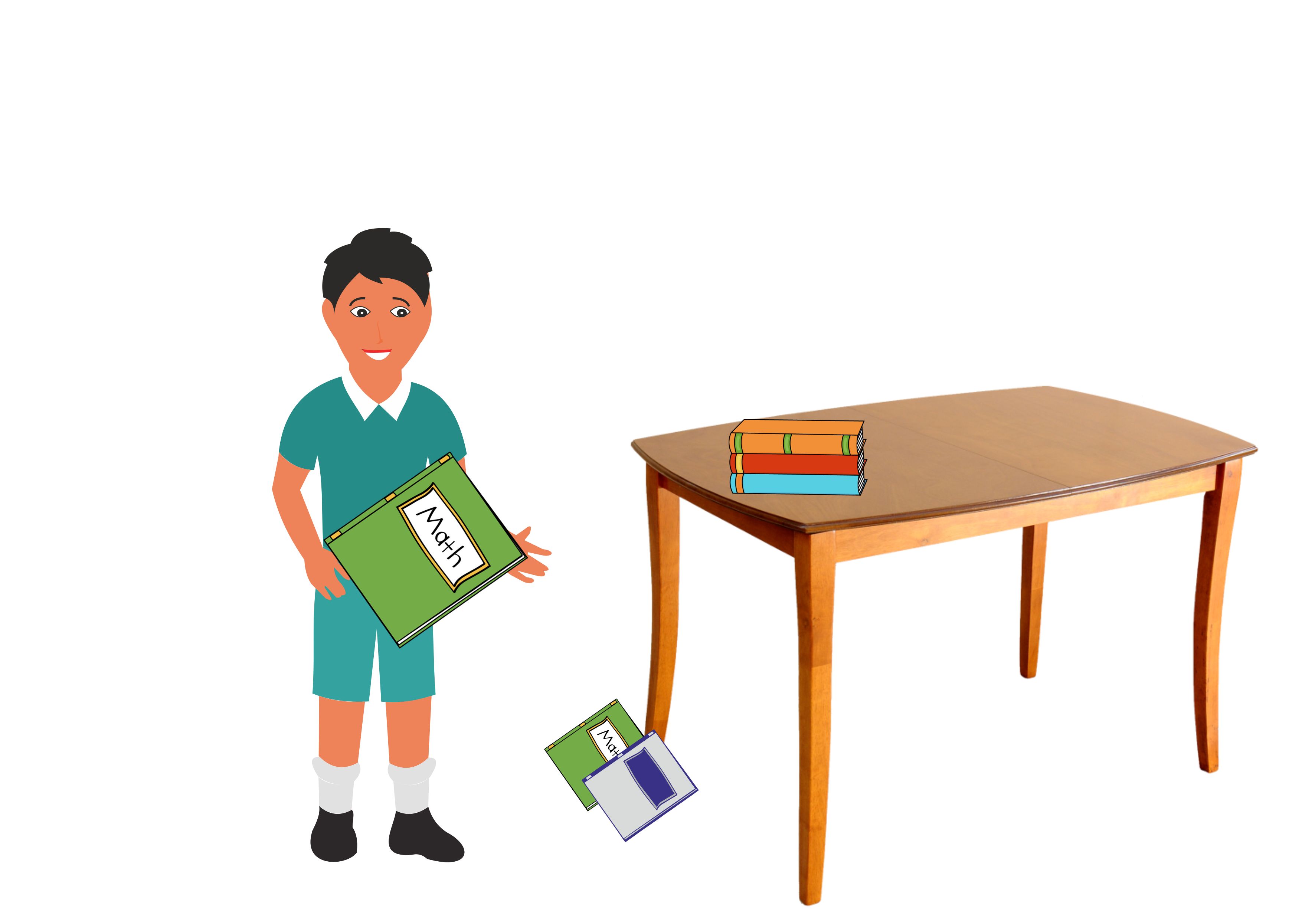 रामने पुस्तक उचलले आणि ते मेजावर ठेवले.
