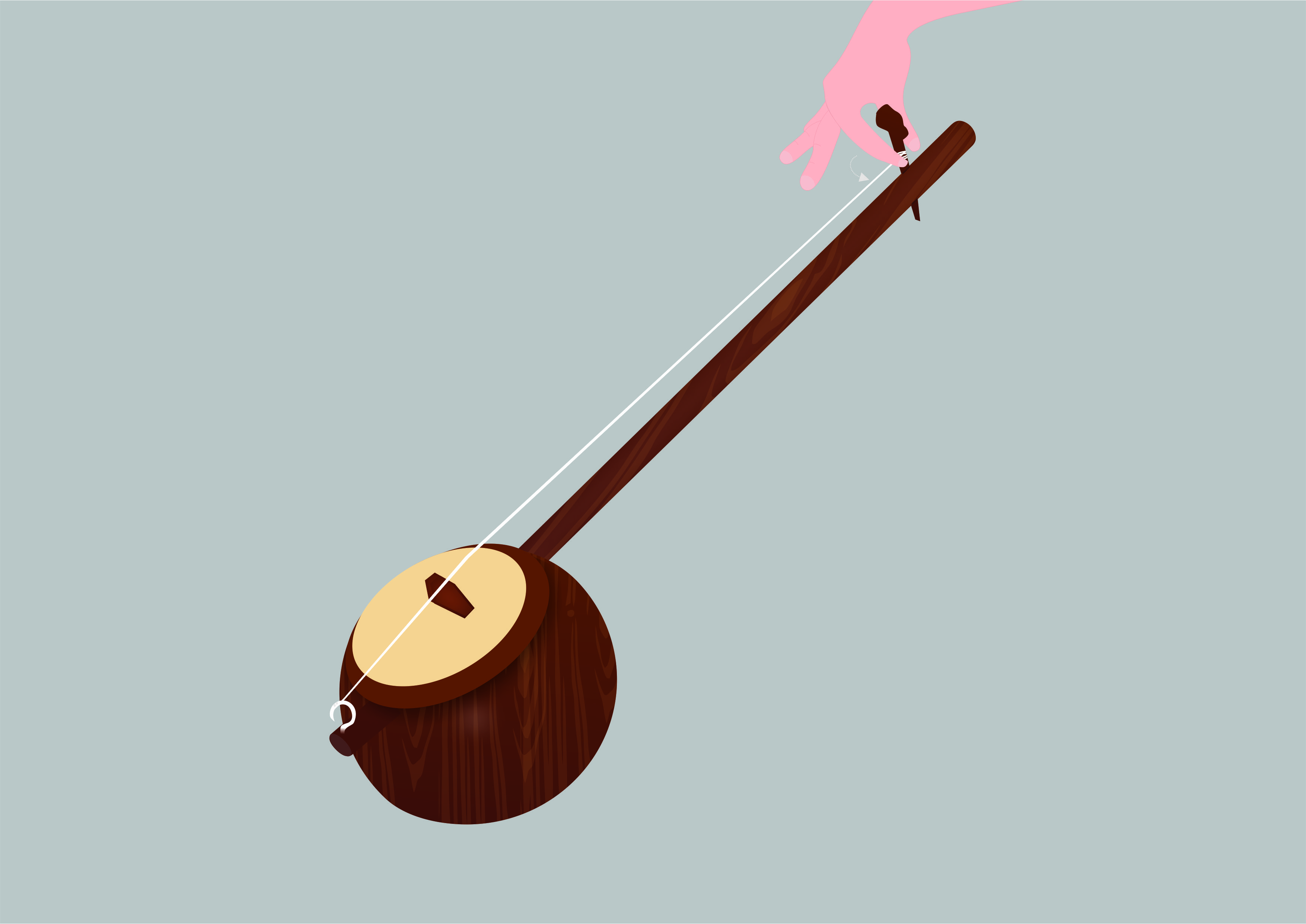 ढोल, वीणा इत्यादींची दोरी, तार, चामडे इत्यादी ताणले जाणे