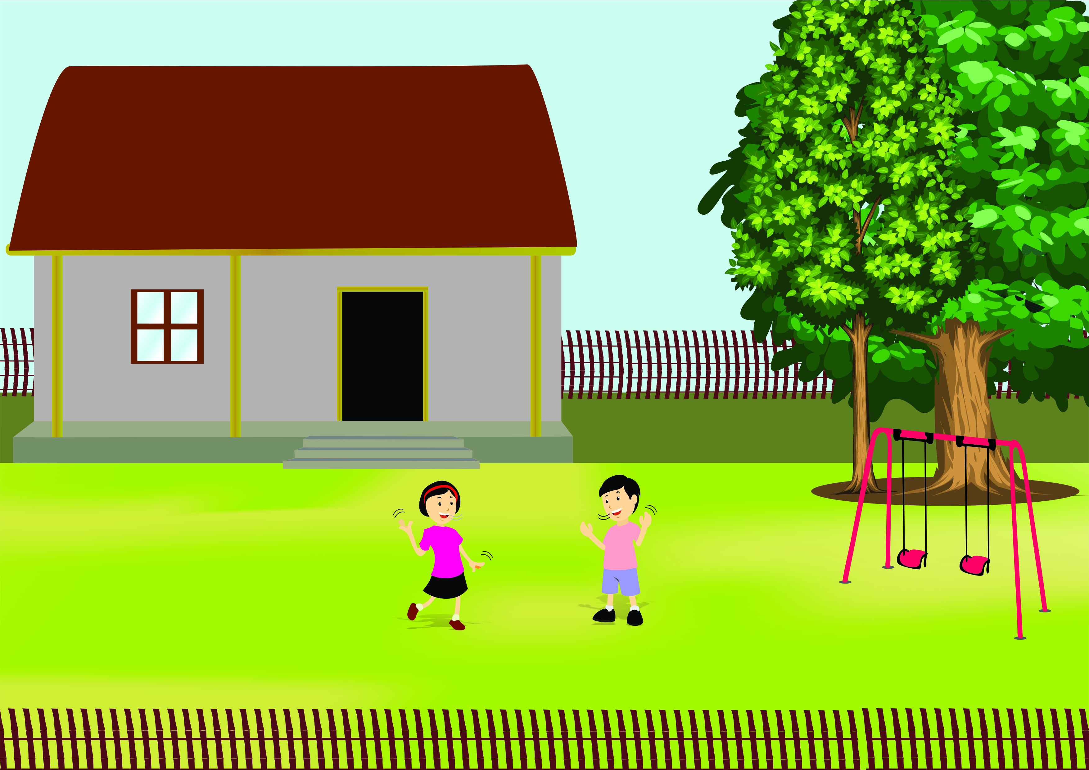 मुले चौकात खेळत आहेत.
