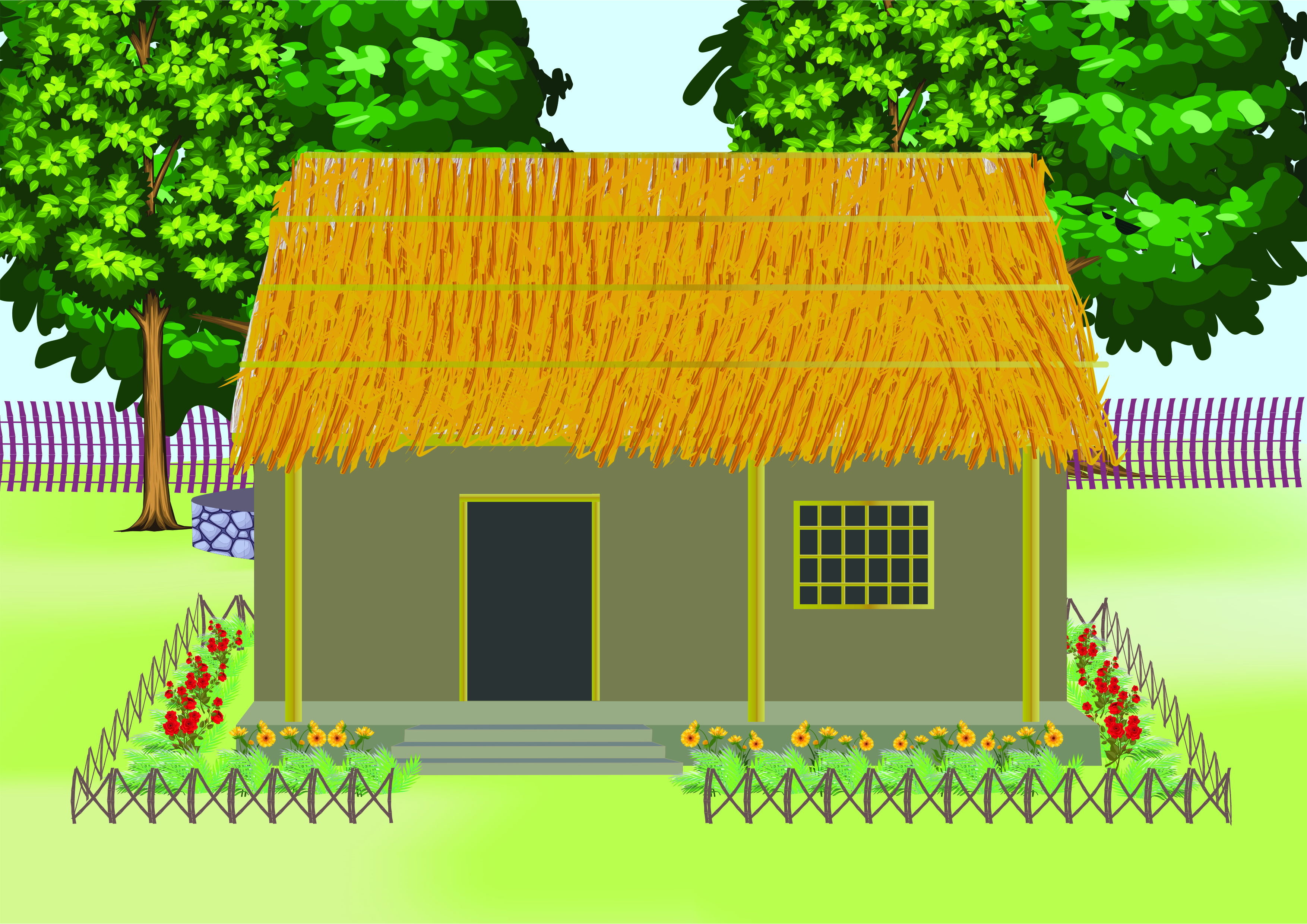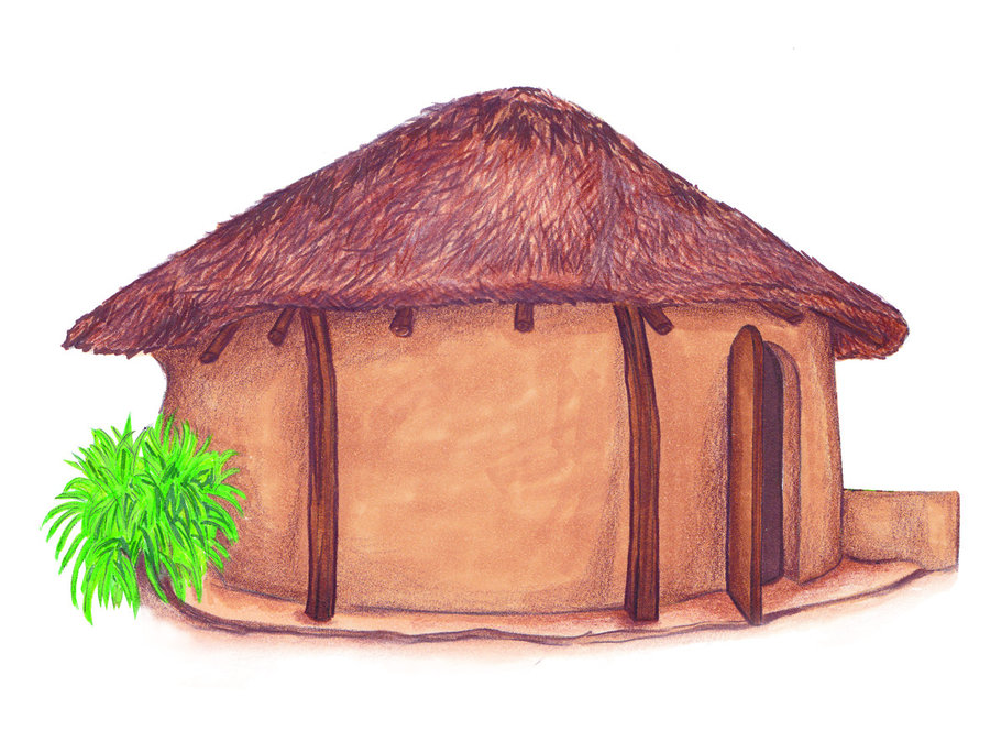 गवत,माती आदिंनी बनविलेले छोटे घर