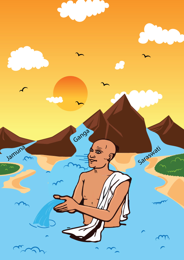 गंगा,यमुना व गुप्त असलेली सरस्वती या तीन नद्यांच्या प्रयाग येथील संगमाची जागा