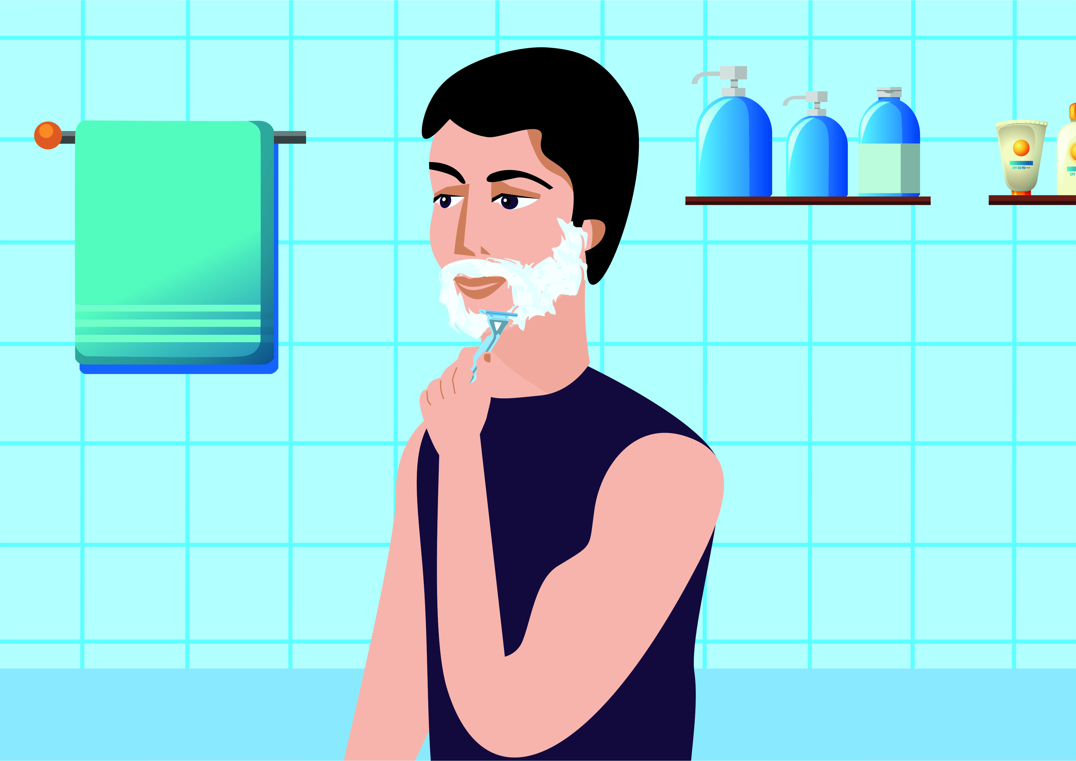 वस्तरा, ब्लेड इत्यादींनी डोके, दाढी इत्यादी अवयवांवरचे केस काढणे