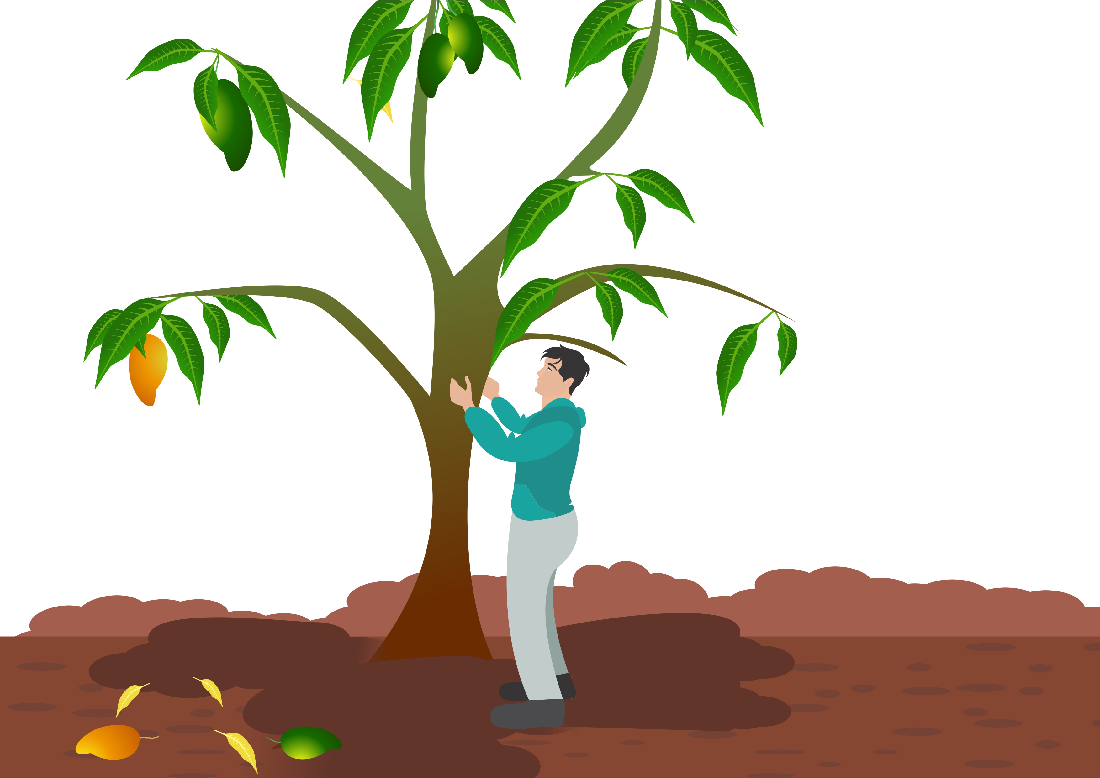 झाड हलविल्याने आंबे खाली पडले.