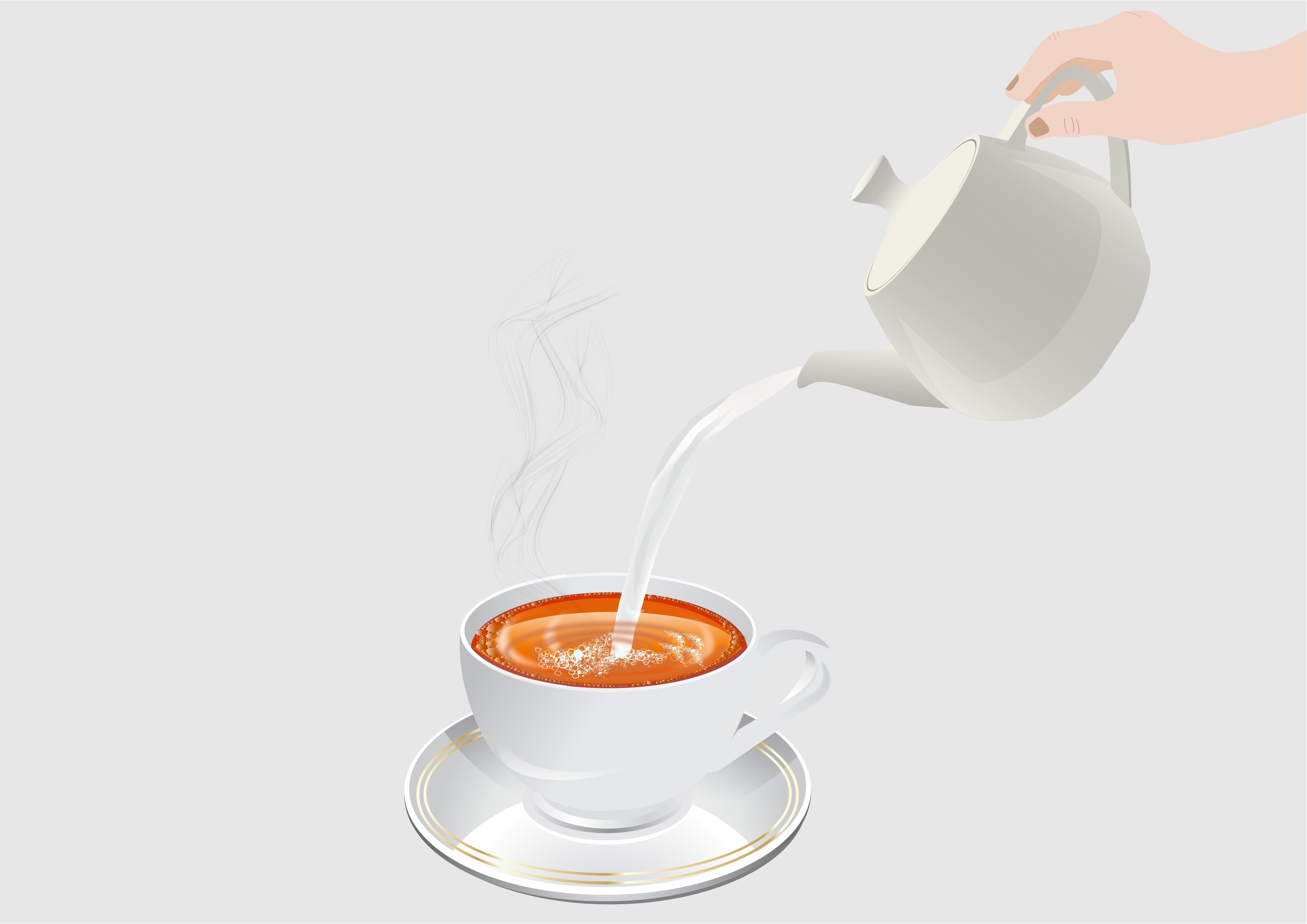 आई वाटीने पेल्यात दूध ओतत आहे.