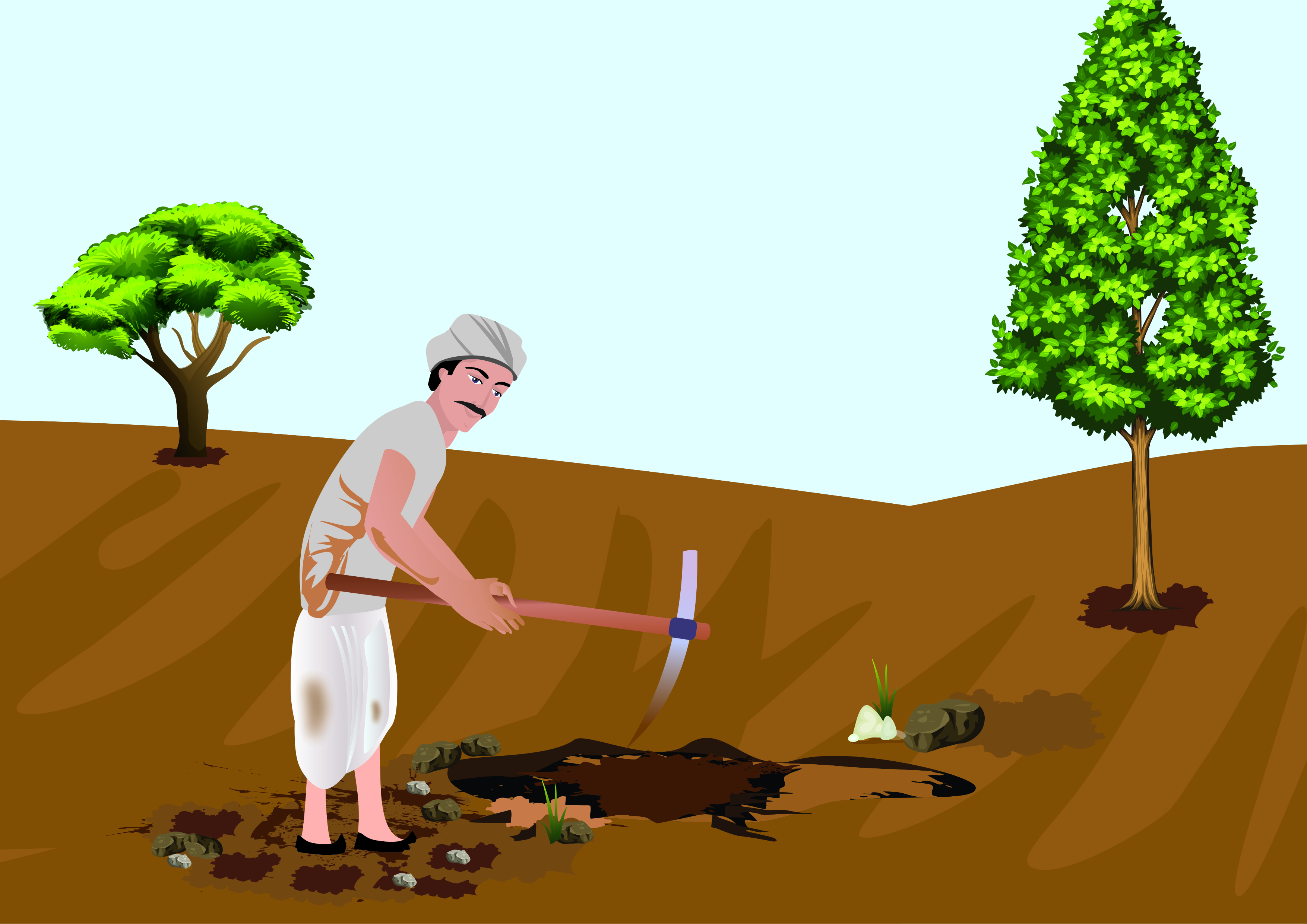 पेरणी करण्यासाठी शेतकर्याने जमीन खणली