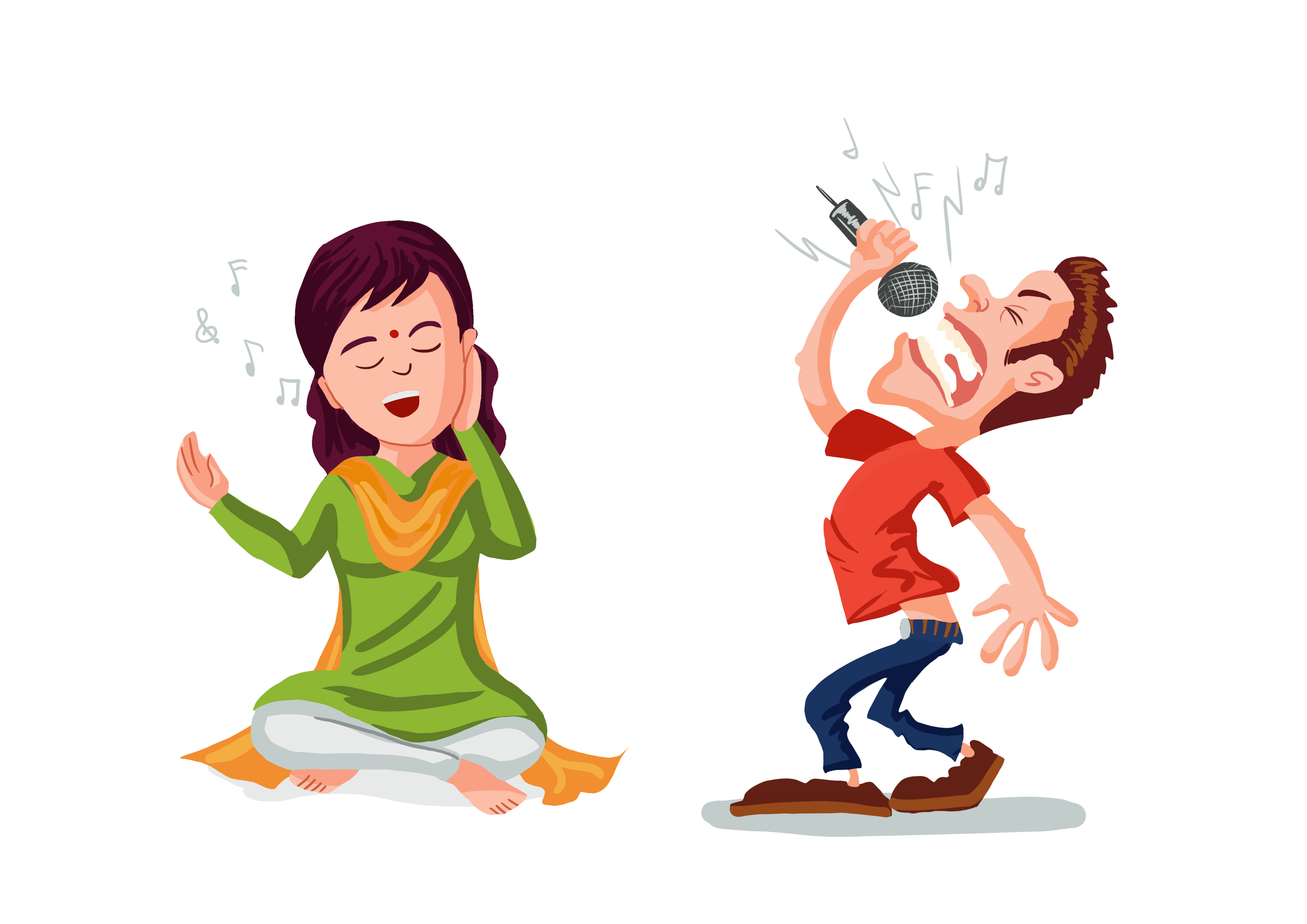 सर्वसामान्य स्वरापेक्षा खालच्या स्वरात