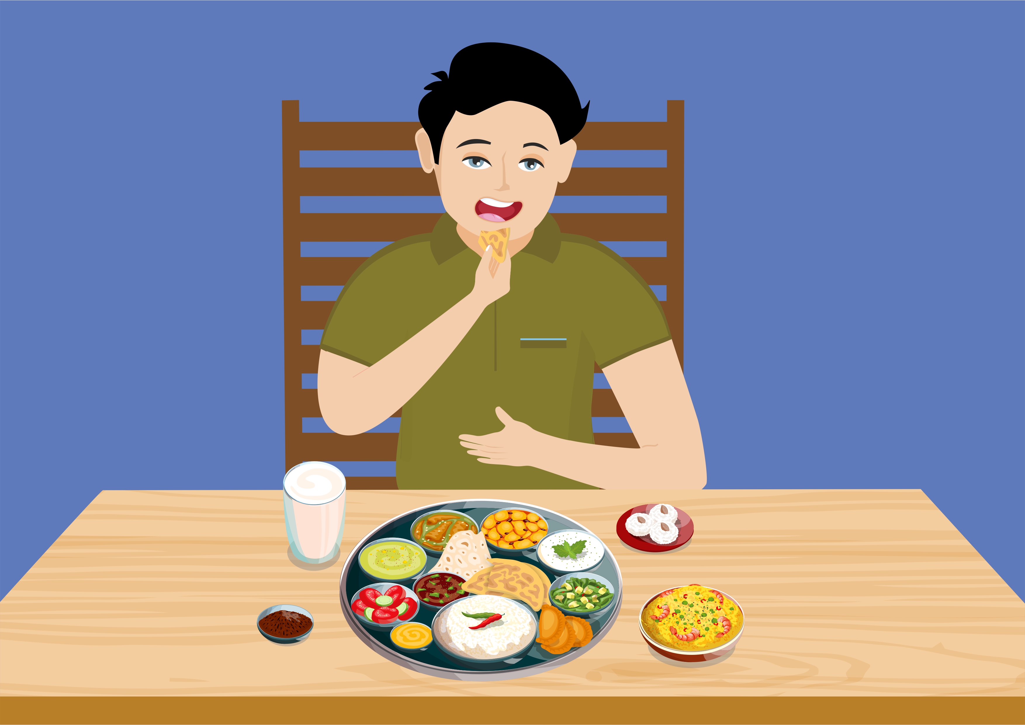 न्याहारी वगळता दिवसातील किमान दोन वेळा (साधारणतः दुपारी व रात्री) खाण्याचे अन्नपदार्थ