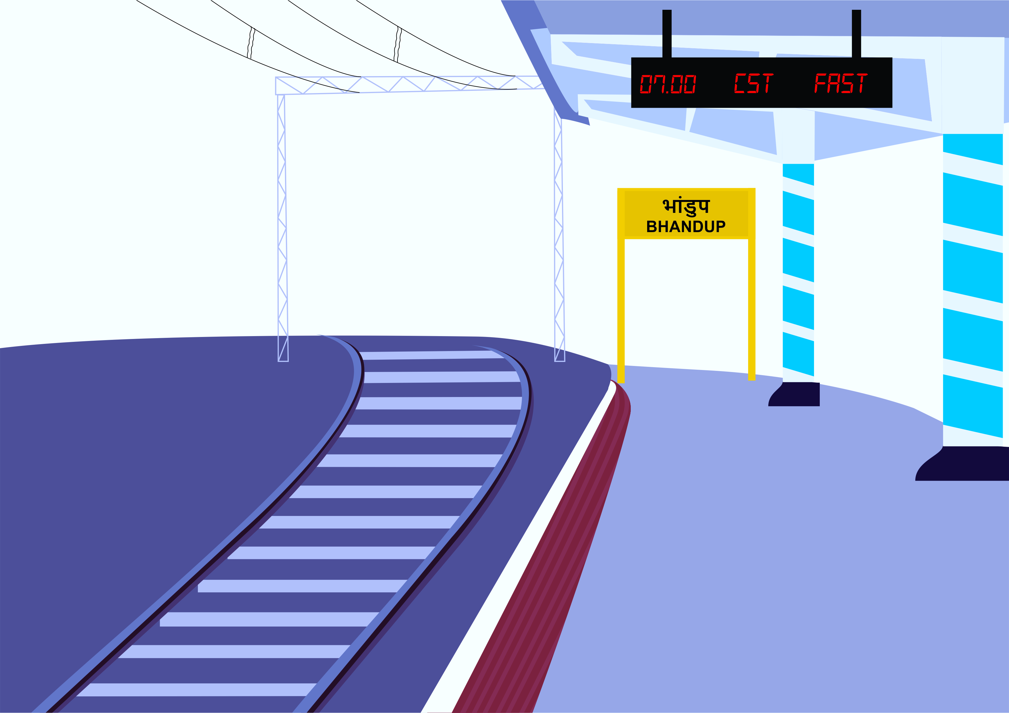 सकाळच्या वेळी रेल्वेस्टेशन प्रवाश्यांनी गजबजलेले होते.