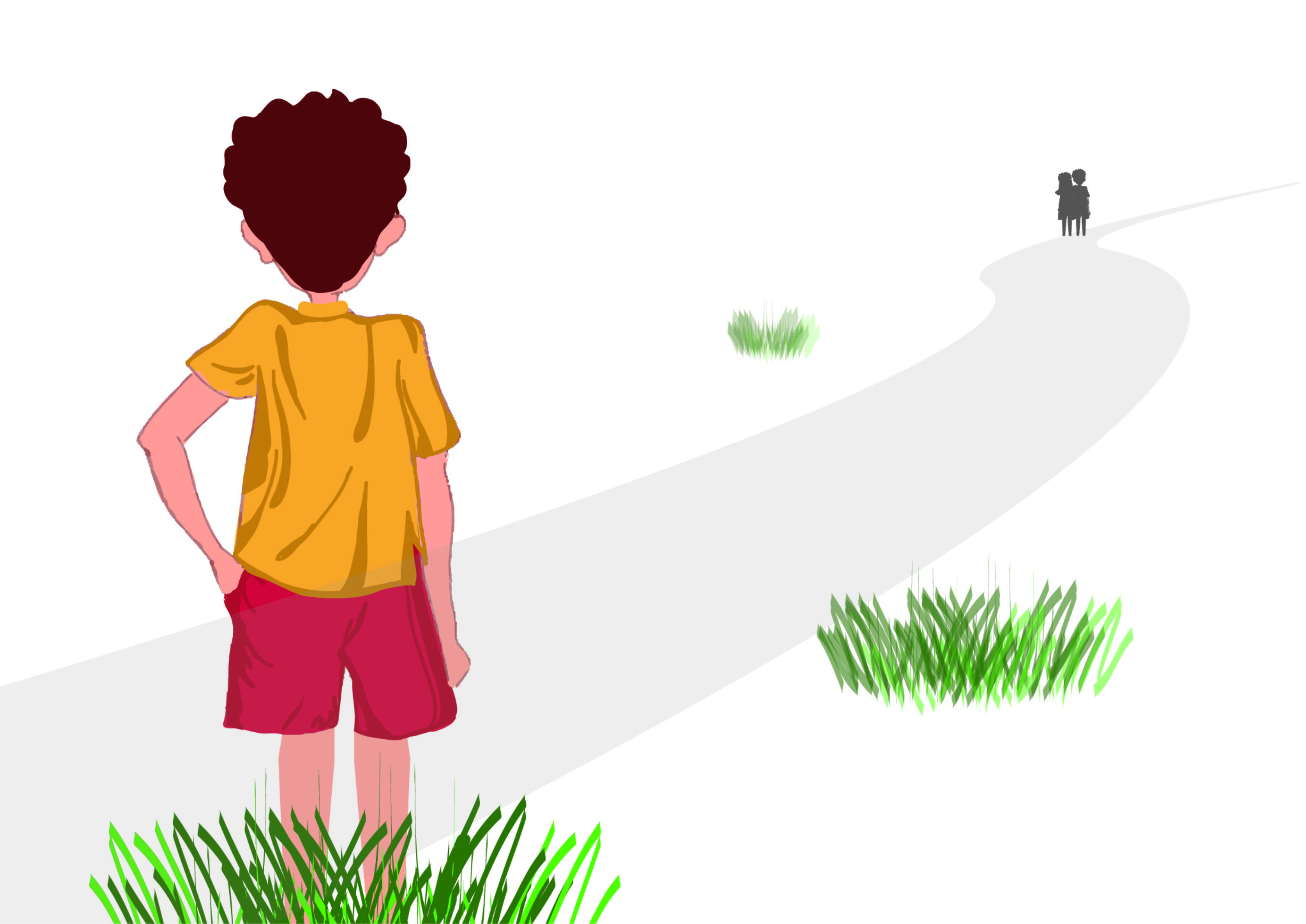 मोठा रस्ता पार करता करता मुले थकून गेली आहे.